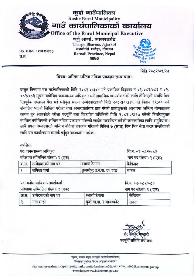 अन्तिम नतिजा प्रकाशन सम्बन्धी सुचना