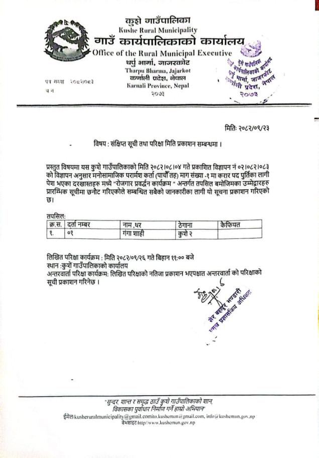 विषय संक्षिप्त सूची तथा परिक्षा मिति प्रकाशन सम्बन्धमा