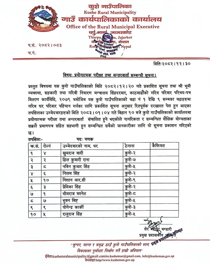 गणक हरुको प्रयोगात्मक परिक्षा तथा अन्तरवार्ता सम्बन्धि सुचना