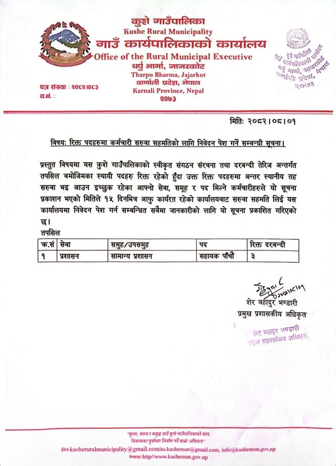 रिक्त पदमा कर्मचारि सरुवा सहमति को लागि निवेदन पेश गर्ने सम्बन्धि सुचना ! !